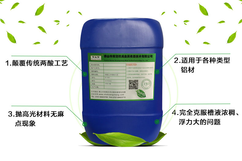 那么有沒有一種工藝,可以解決以上弊端,讓光澤度和成本上得到一種滿足和平衡呢?在化拋領(lǐng)域,大家都有著無限的發(fā)揮空間。又進(jìn)金屬表面處理技術(shù)有限公司,作為一家集科研,銷售和生產(chǎn)為一體的高新科技企業(yè),經(jīng)過一年時(shí)間的努力,終于研發(fā)了一款顛覆傳統(tǒng)兩酸工藝的化拋添加劑---SC-B05。其特點(diǎn)如下: